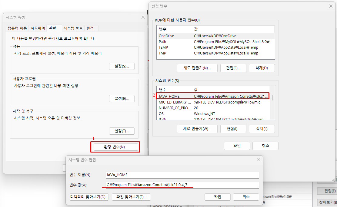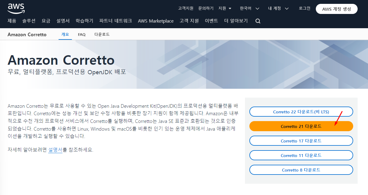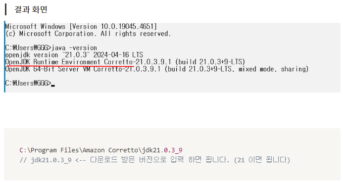 STS4-4.21.1버전(JDK 21 사용시 4.21.1 버전 이상 이어야 함), 아마존 JDK 21버전