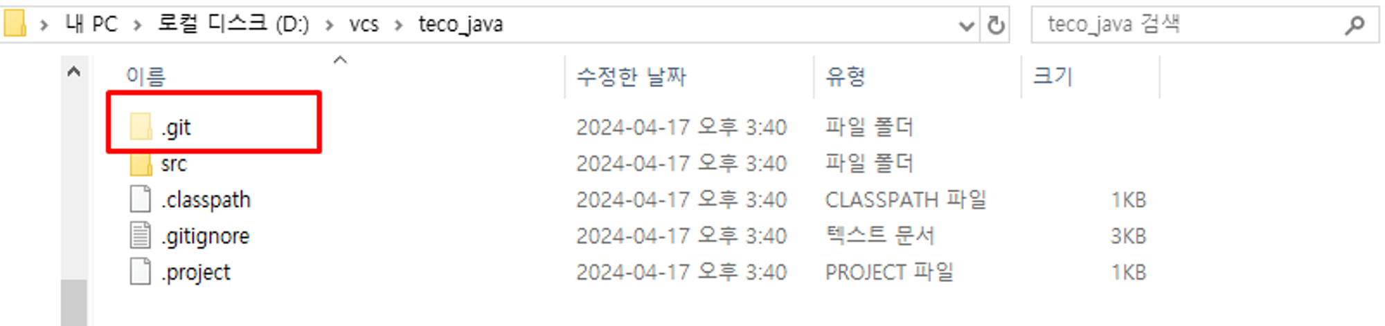 저장소 생성하는 명령어이다. get init 명령어를 수행하면 숨겨진 폴더 .git이 생성된다. .git이라는 가상의 파일에 히스토리가 저장되고 있으므로 해당 파일을 삭제하면 작업 과정이 사라진다. 보기 창에서 숨긴 항목에 체크해야 .git 파일이 보인다!!