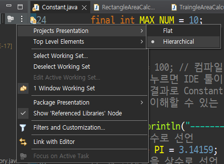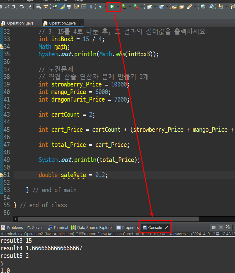 (작성 중인 클래스에서 이전 클래스에서 자꾸 출력된다면 이전 콘솔 실행 내역을 삭제해준다.)