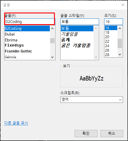 (글꼴 앞에 @가 있으면 한글이 90도 회전되어 출력된다.)