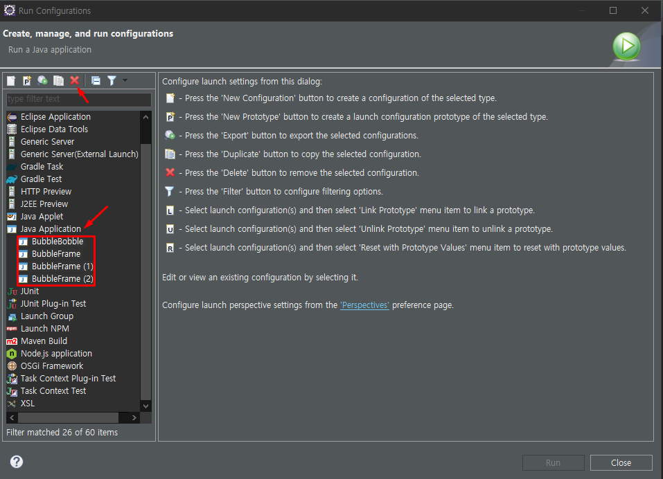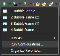 초록색 재생 버튼 > Run Configurations > Java Application 안에 있는 이전 실행 내역 삭제