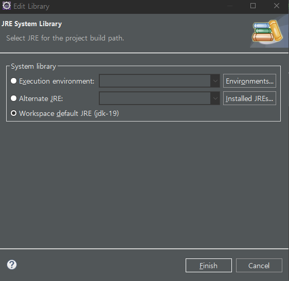 마우스 우클릭 > Build Path > Configure Build Path > unbound 파일 선택 > workspace default로 변경