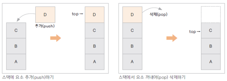 가장 나중에 입력된 자료가 가장 먼저 출력되는 자료 구조 (LIFO = Last In First Out)\